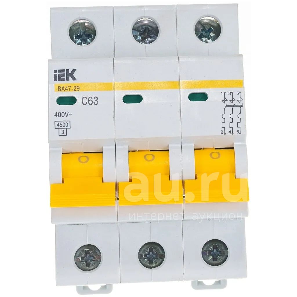 Автоматический выключатель на DIN-рейку, IEK, ВА47-29 3Р, 3 полюса, 63, 4.5 кА, 400 В, MVA20-3-063-C