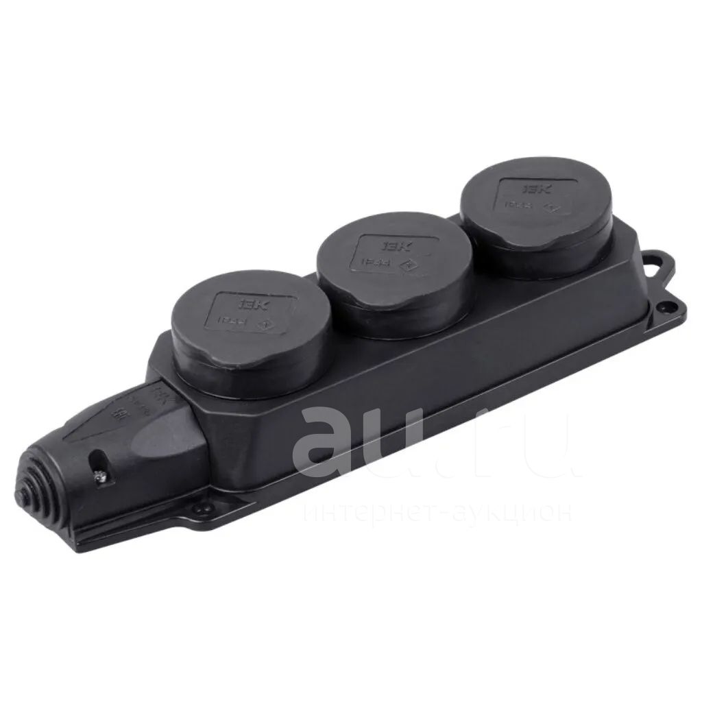 Розетка-колодка 3 гнезда, 16 А, 250 В, с защитными шторками, IP44, черная, IP44, IEK, Омега РБ33-1-0м, PKR61-016-2-K02