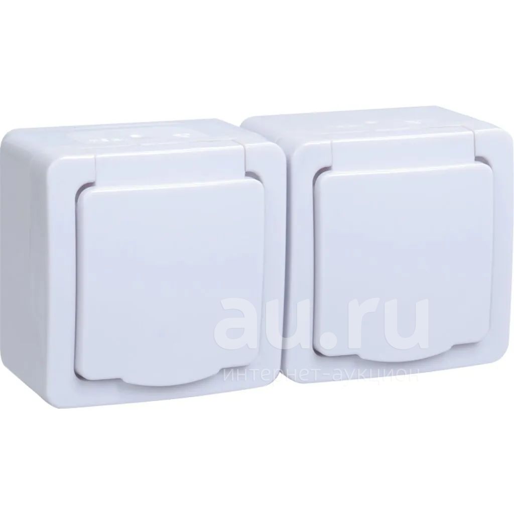 Розетка открытой установки, 2 гнезда, с заземлением, 16 А, 250 В, пластик, IP54, белая, IEK, РСб22-3-ГПБб Гермес Plus, ERMP22-K01-16-54-EC