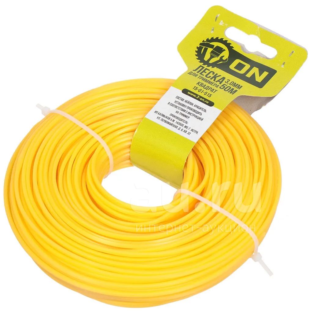 Леска для триммера 3 мм, 50 м, квадрат, Трион