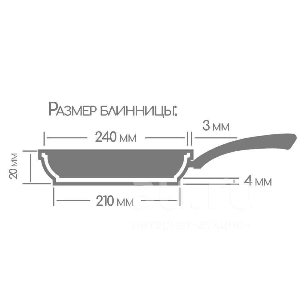 Сковорода изготовлена из пищевого алюминия и покрыта двойным слоем антипригарного покрытия Greblon Мрамор, немецкого производства. Дно толщиной 4 мм равномерно прогревается и не деформируется. Чтобы блины легко отставали, сковородку достаточно смазать тонким слоем масла. Удобная бакелитовая ручка не нагревается. Блины удобно снимать благодаря низким бортам, расположенным под острым углом по отношению ко дну. Сковорода подходит для газовых, электрических и стеклокерамических плит.