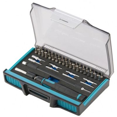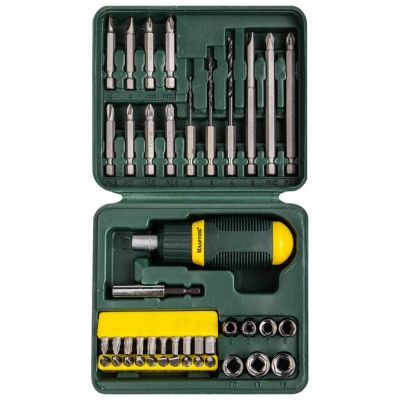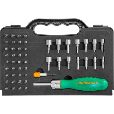 Отвертка реверсивная, 14 предметов, Jonnesway, с насадками, кейс, AG010138, 48302