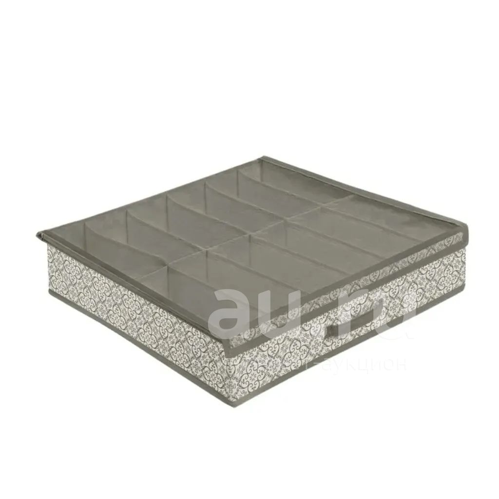 Кофр для хранения, 12 секций, 64х60х12 см, спанбонд, с ручкой, подкроватный, серый, с рисунком, ВС-191-646012
