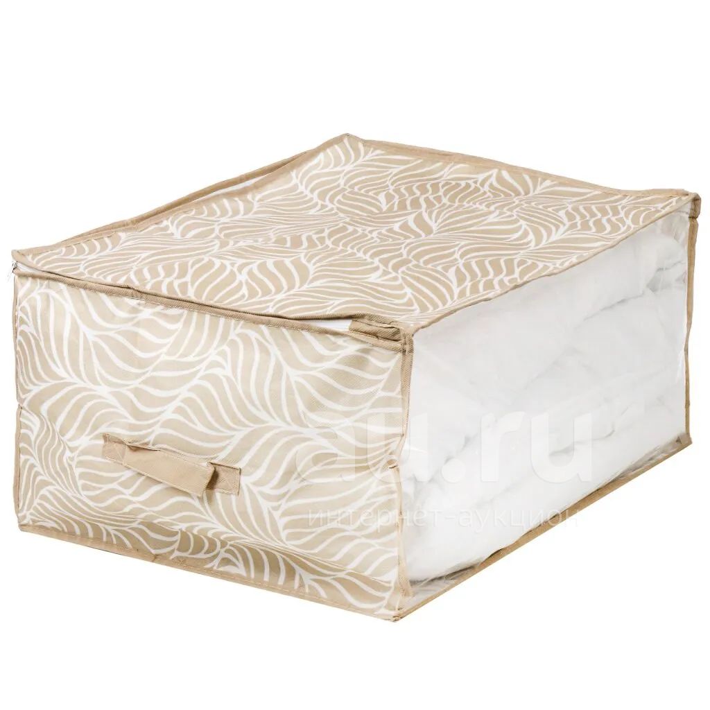 Кофр для хранения, с крышкой, складной, 60х45х30 см, с молнией, с ручкой, бежевый, Листья, UC-215