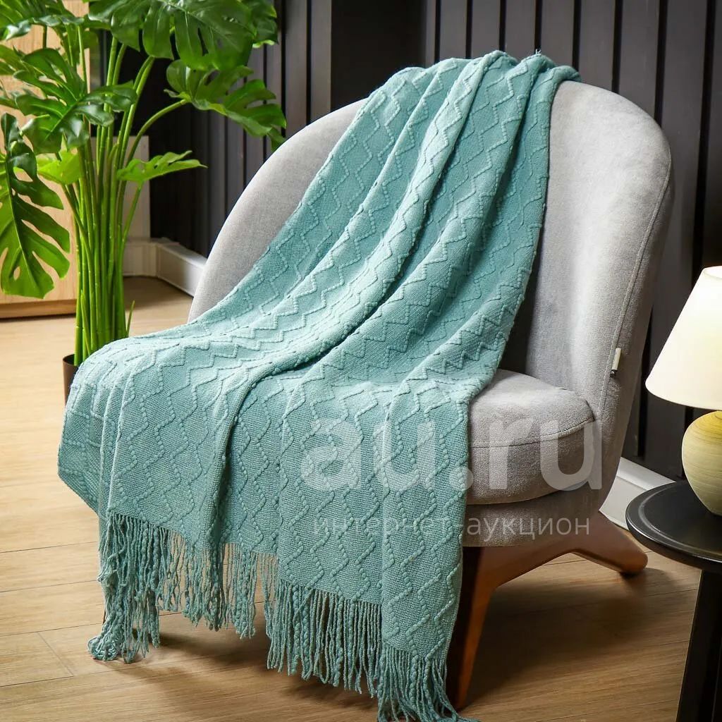 Плед 1.5-спальный, 130х170 см, 100% полиэстер, Silvano, Теплые объятия ромбы, тиффани, вязаный, TB1317-51