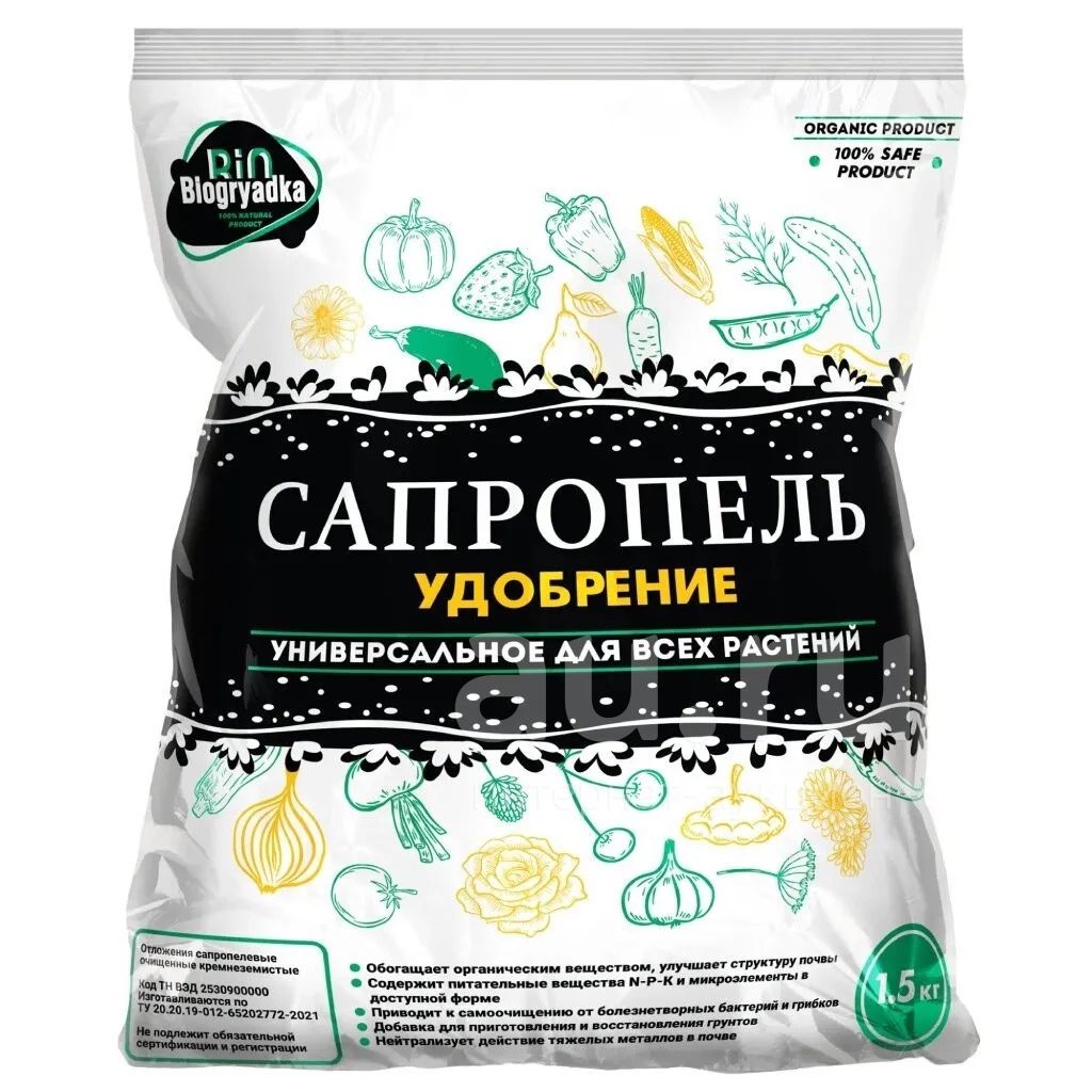 Удобрение Сапропель, универсальное, для всех растений, КемиПро, органическое, 1.5 кг, Biogryadka