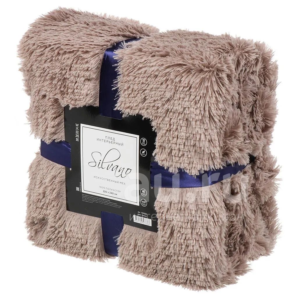 Плед евро, 220х240 см, искусственный мех, 100% полиэстер, Silvano, мокко