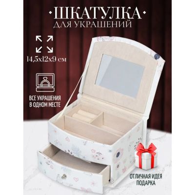 Шкатулка для украшений, искусственная кожа, 15.5х13х13 см, Y3-1734