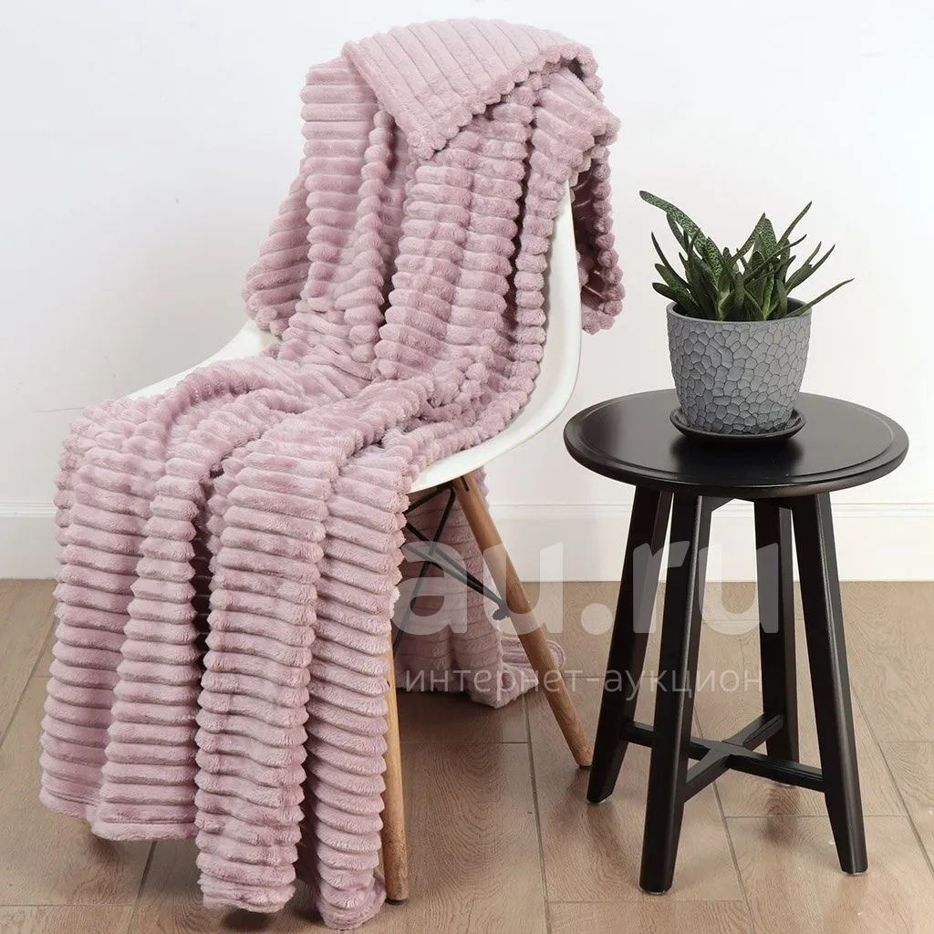 Плед евро, 200х240 см, велсофт жаккард, 100% полиэстер, Silvano, Неаполь Полоски, пыльно-розовый