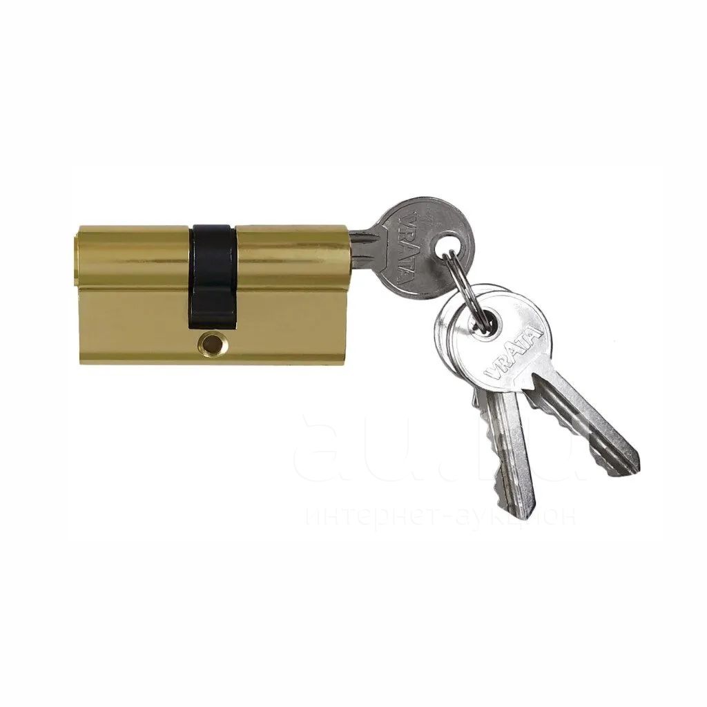 Личинка замка двери Vrata, ЦМ 90(45/45), 208209, 90 мм, золото, алюминий, 3 ключа