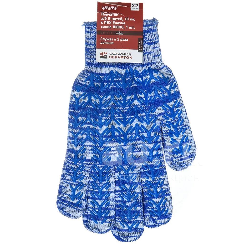 Перчатки х/б, ПВХ покрытие, елочка, размер L, 10 класс вязки, 6 нитей, синяя основа, плотные, Фабрика перчаток, европодвес