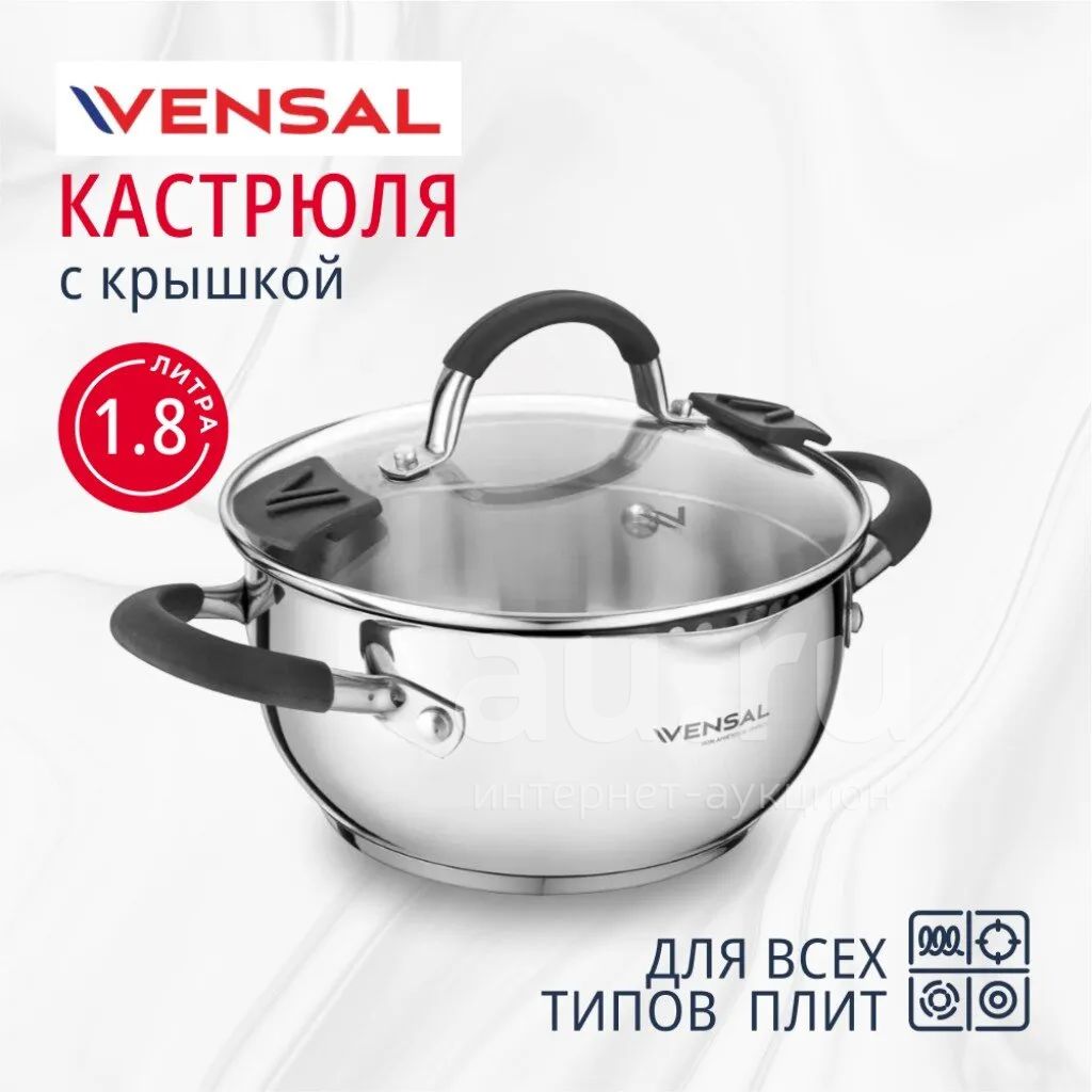 Кастрюля нержавеющая сталь, 1.8 л, с крышкой, крышка стекло, круглая, Vensal, Magique, VS1522, индукция