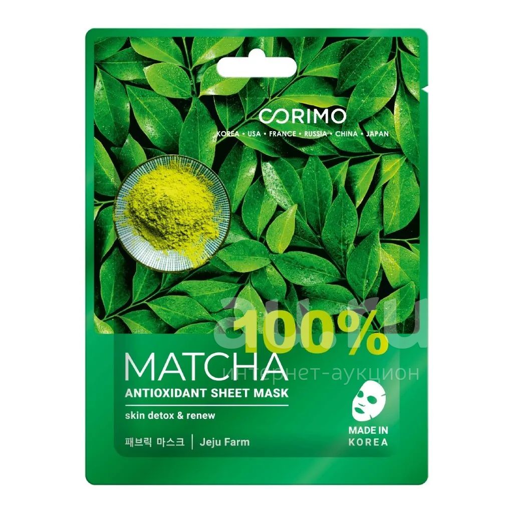 Маска для лица, Corimo, Антиоксидант, тканевая, 22 г, 100% Matcha