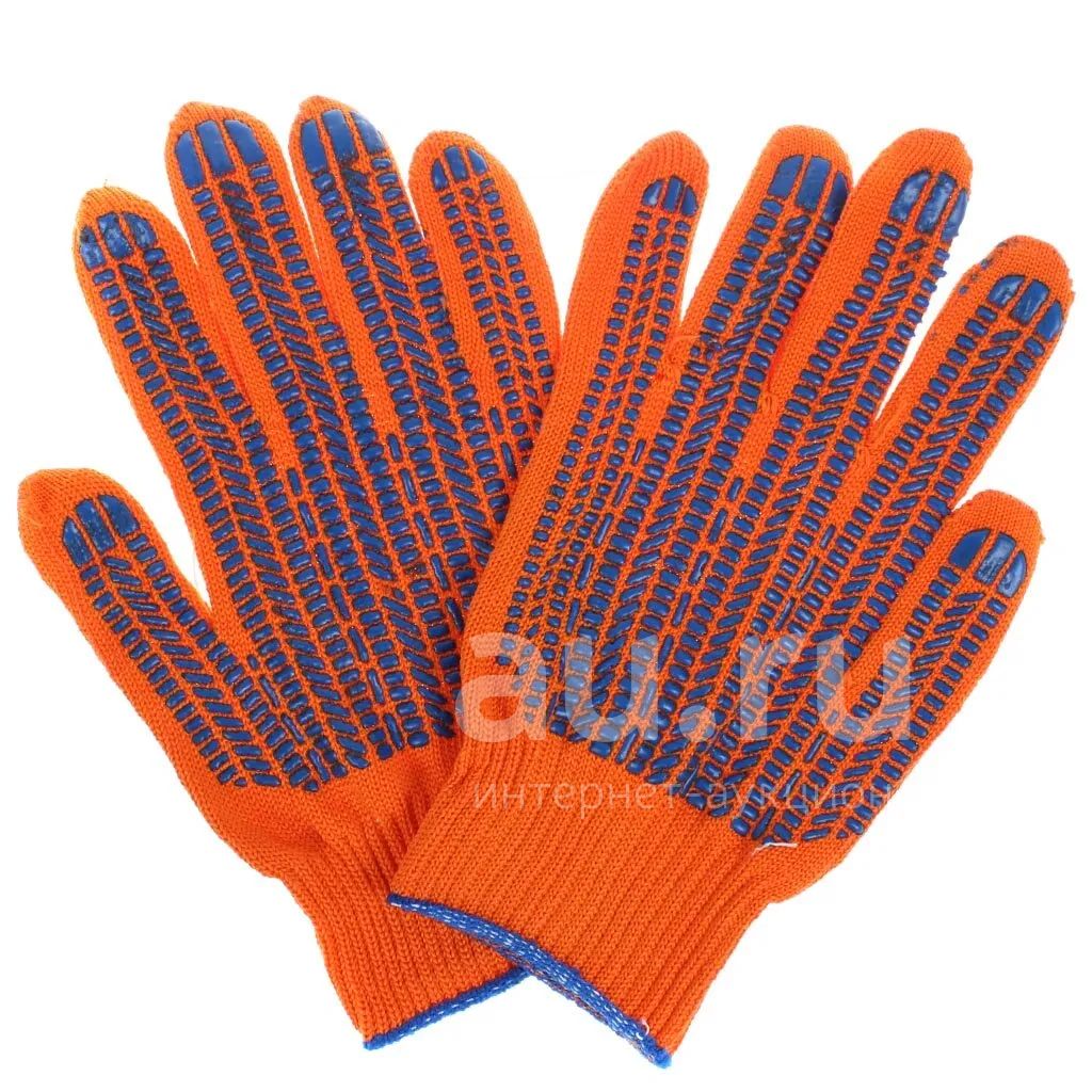 Перчатки х/б, ПВХ покрытие, протектор, универсальный размер, 10 класс вязки, 6 нитей, оранжевая основа, усиленные, двухслойные, Люкс