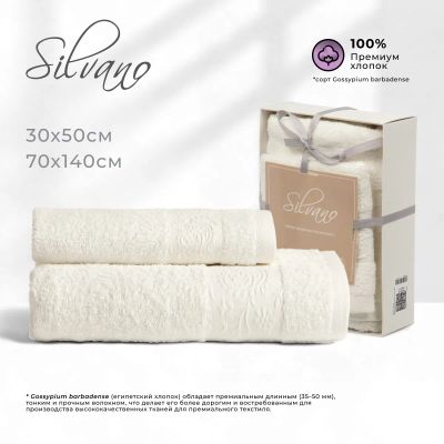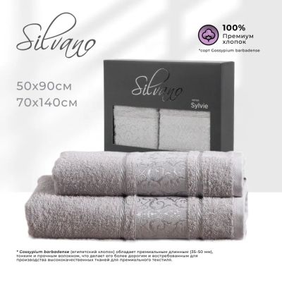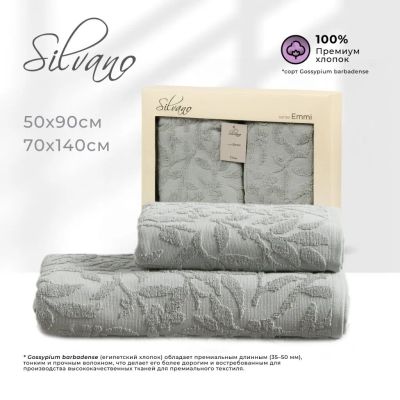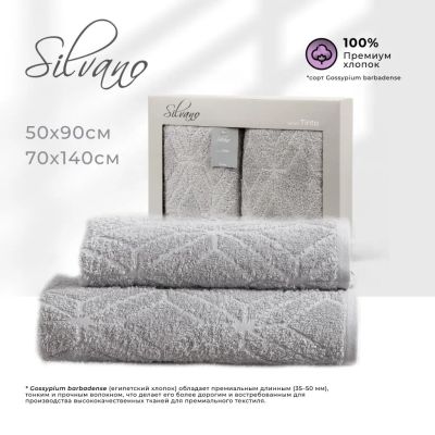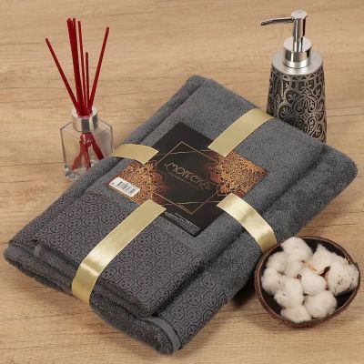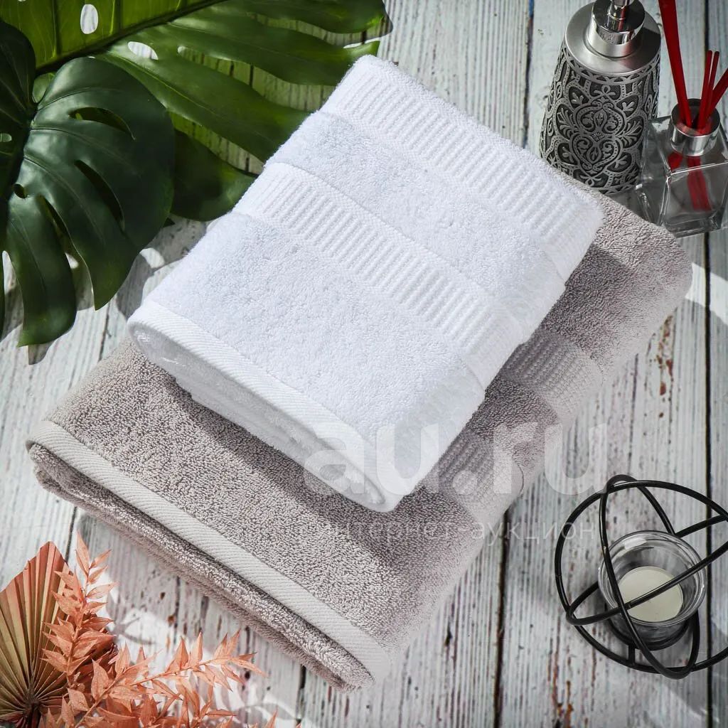 Набор полотенец 2 шт, 50х90, 70х140 см, 100% хлопок, 500 г/м2, Эстетика, бело-серый, Узбекистан
