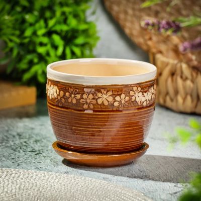 Горшок керамика, 16х15.5 см, для цветов, латте, Лидер №2, 4089