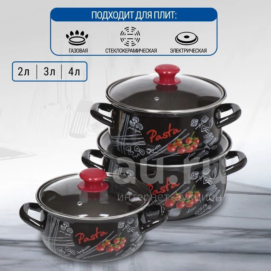 219руб.Набор посуды эмалированная сталь, 6 предметов, кастрюли 2,3,4 л, МП, ...