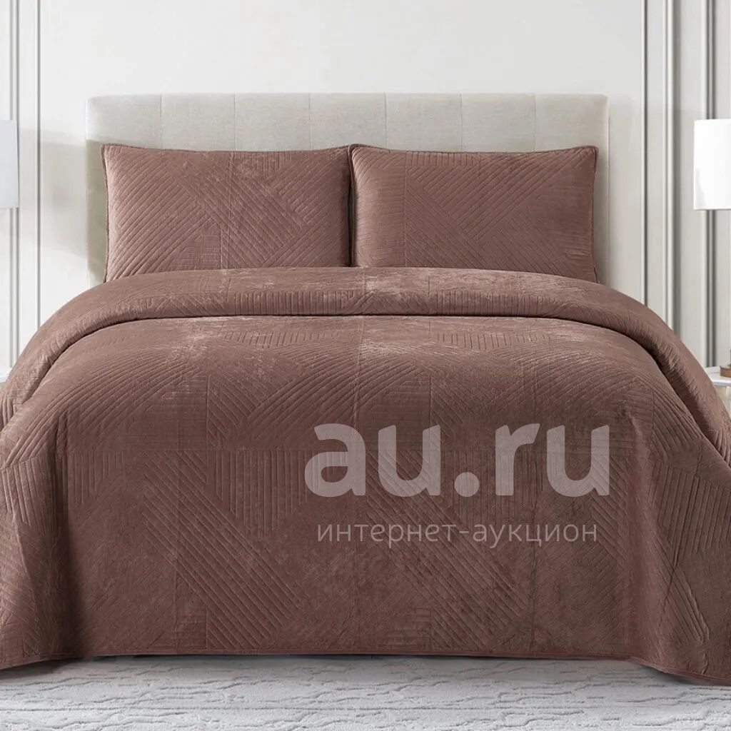 Набор для спальни евро, 230 х 250 см, 2 наволочки 50х70 см, 100% полиэстер, Cleo, Velluto Полоска, коричневый, 230/002-VEL
