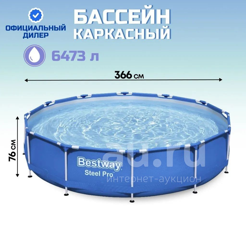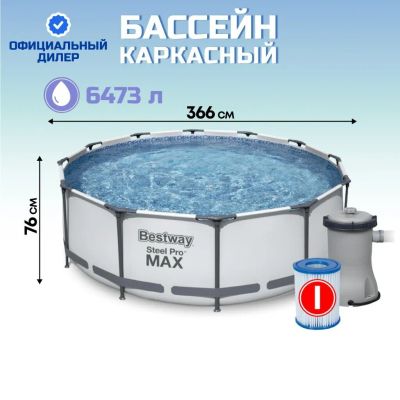 Бассейн каркасный Bestway, 366х76 см, Steel Pro, 56706, 6473 л