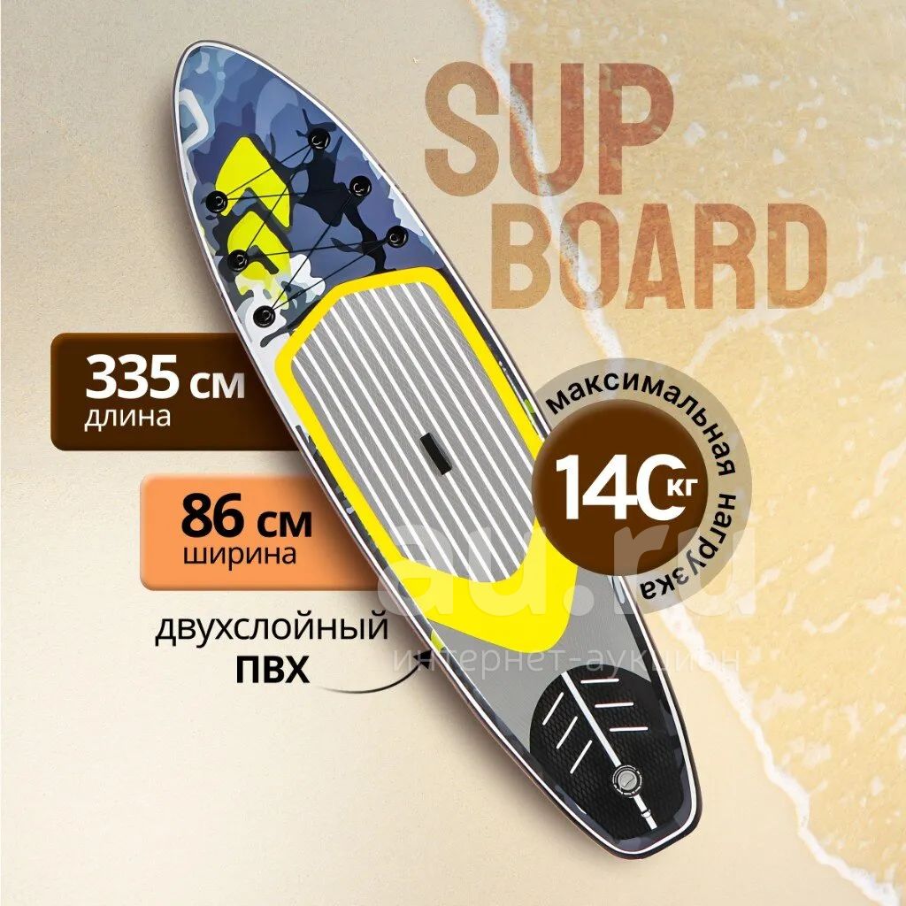 Сап борд надувной 335х86х15 см, двойной ПВХ, в сумке с насосом, веслом и лиш, 140 кг, W-62