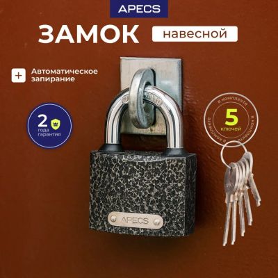Замок навесной Apecs, PD-01-50-Blister, цилиндровый, 3 замка, 5 ключей