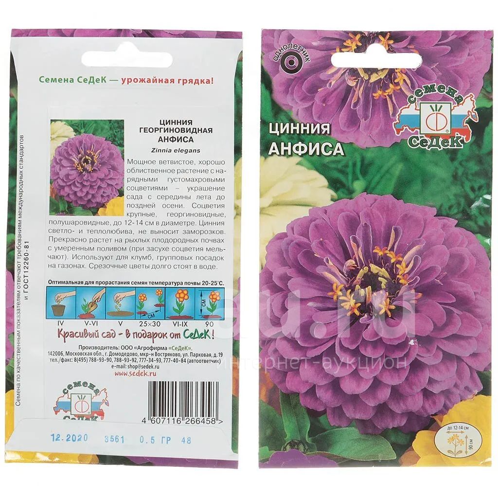 Семена Цветы, Цинния, Анфиса, 0.5 г, цветная упаковка, Седек