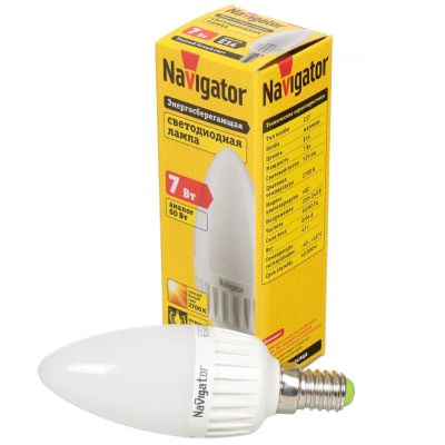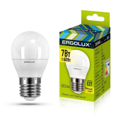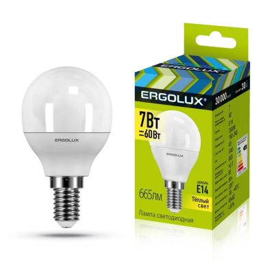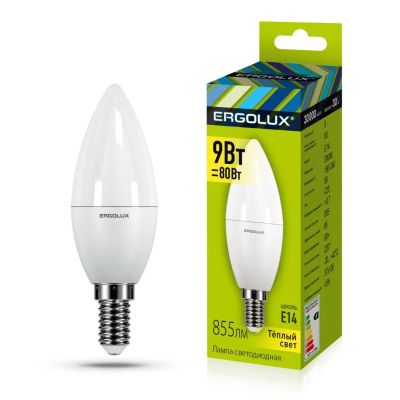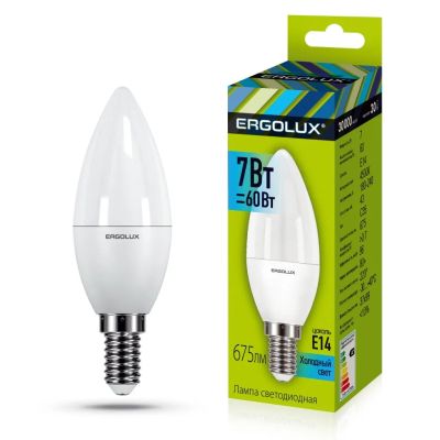 Лампа светодиодная E14, 7 Вт, 60 Вт, 220 В, свеча, 3000 К, теплый белый свет, Ergolux, 12134