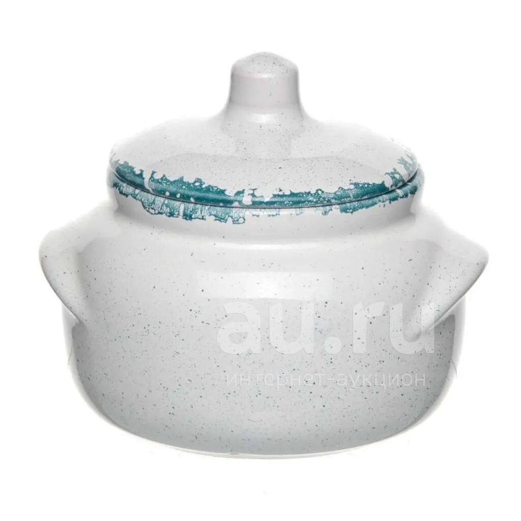 Отличный порционный горшок для жаркого современной формы. Подходит для здорового питания. Для использования в духовке и микроволновке. Можно мыть в посудомоечной машине. Белая глянцевая поверхность с тёмно - бирюзовыми брызгами и каймой.