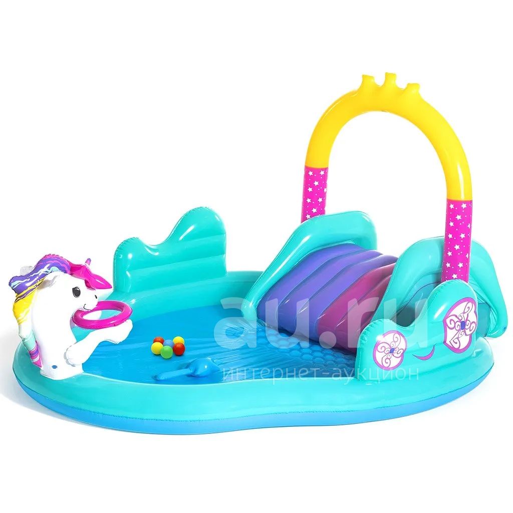 Игровой центр-бассейн Bestway, 274х198х137.5 см, Волшебный единорог, 53097, 220 л, горка, распылитель, мячики, кольцо, от 2 лет