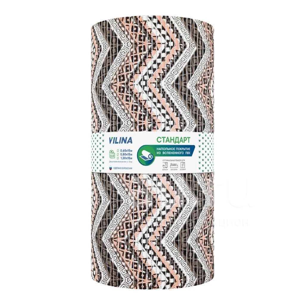 Коврик для ванной, антискользящий, 0.8х15 м, вспененный ПВХ, бежевый, Вилина, Аква Стандарт, V17BG, этнический рисунок