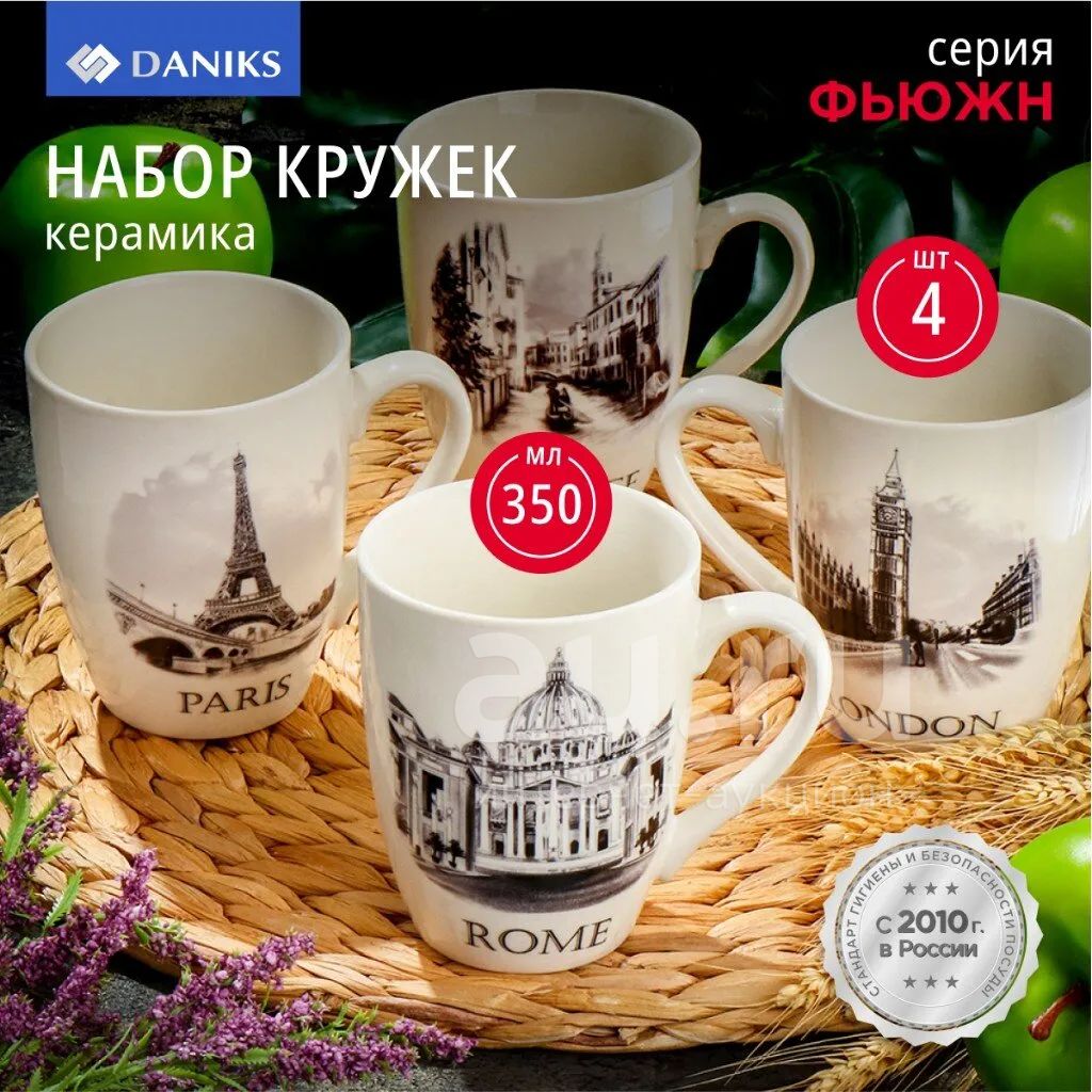 Набор керамических кружек Daniks Фьюжн 350 мл — 4 стильных решения для дома, дачи и подарка. Практично, современно, выгодно для ежедневного использования.