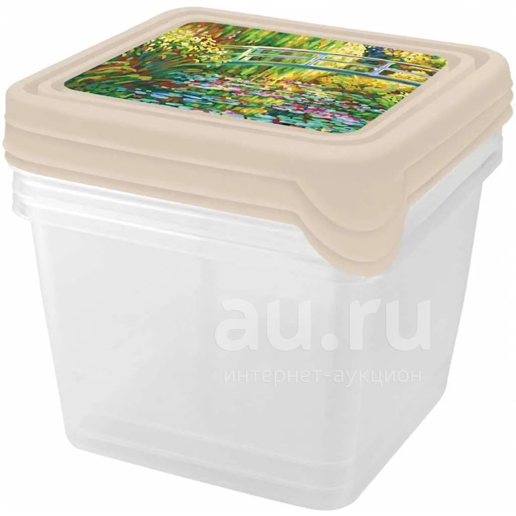 Контейнер пищевой пластик, 0.75 л, 3 шт, квадратный, Plast team, Импрессионисты, PT106012574
