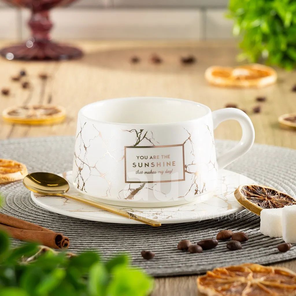 Чайная пара керамика, 2 предмета, на 1 персону, 220 мл, Daniks, Белый и черный мрамор, Y4-3201