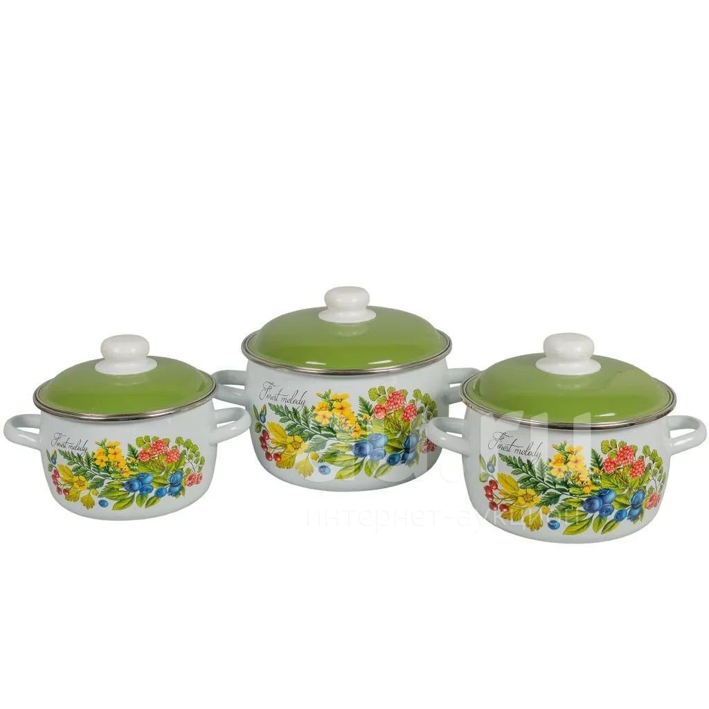Набор посуды эмалированная сталь, 3 предмета, кастрюли 2,3,4 л, индукция, СтальЭмаль, Лесная мелодия, 6KA021M