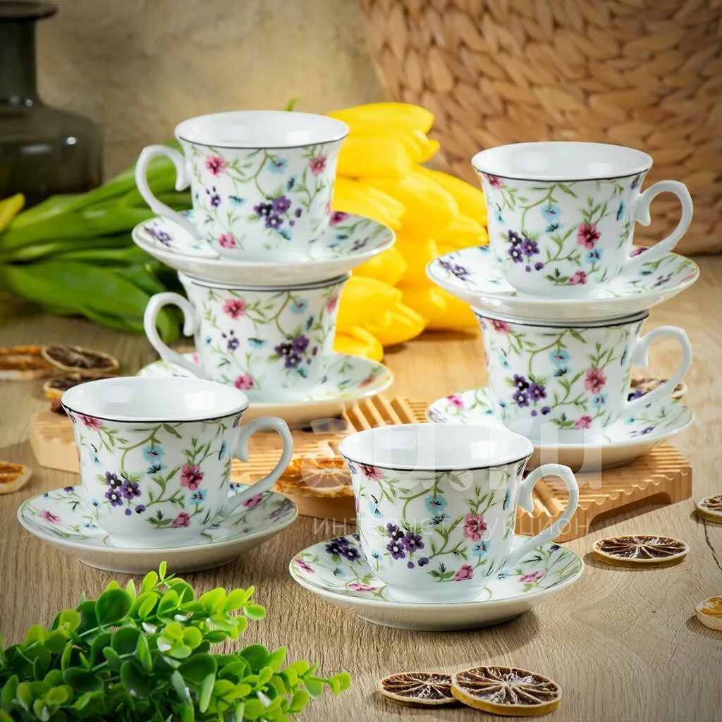 Набор чайный керамика, 12 предметов, на 6 персон, 230 мл, Daniks, Флёр, Y4-7624, подарочная упаковка