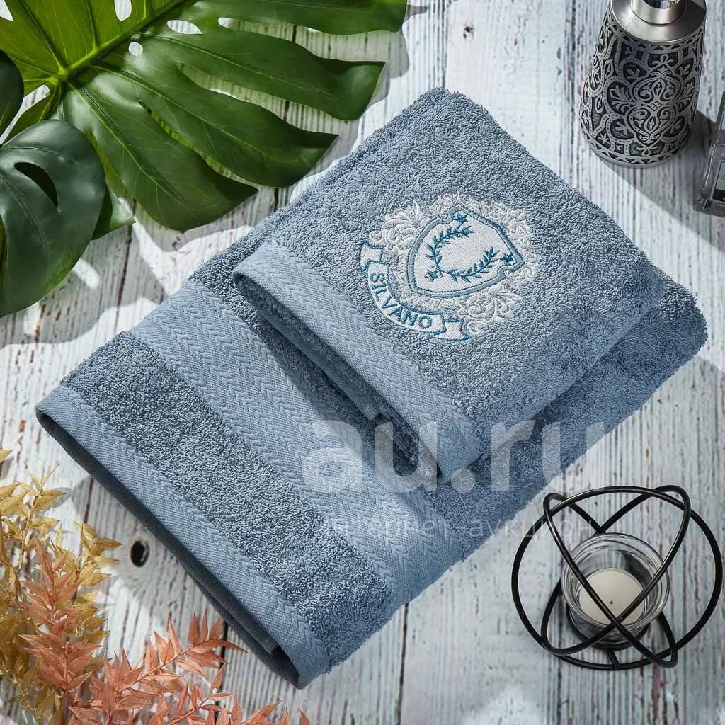 Набор полотенец 2 шт, 50х80, 70х130 см, 100% хлопок, 480 г/м2, Silvano, Герб, серо-синий, Турция