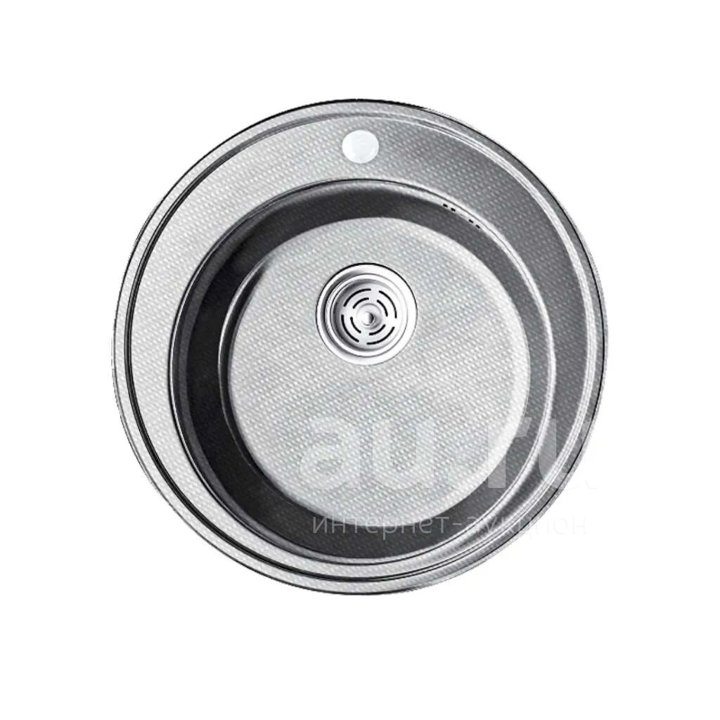 Мойка кухонная врезная, РМС, нержавеющая сталь, 510 мм, 0.6 мм + сифон, декор, MD6-51