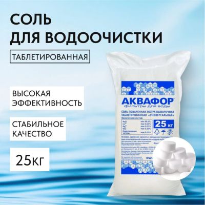 119руб.Соль поваренная Аквафор, Универсальная, 104069, в таблетках, 25 кг