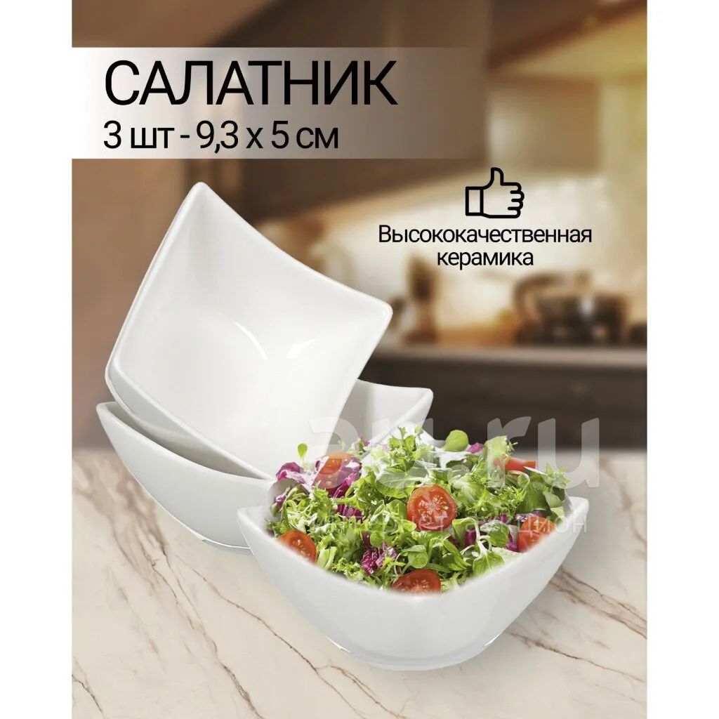 Салатники керамические квадратные 3 шт. 9.3х5 см — стильный набор для сервировки, который решает вопрос удобства и эстетики на вашей кухне.