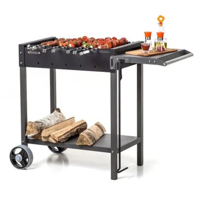Мангал серии МАН 302 от компании Gratar позволяет готовить на живом огне с использованием дров. Он изготовлен из толстой высококачественной стали, которая выдерживает высокие температуры, а его специальная конструкция с усиленными рёбрами жёсткости предотвращает температурную деформацию. Большие колёса позволяют с комфортом перемещать мангал. Вместительные нижняя и боковая полки позволяют разместить необходимый инвентарь для приготовления. Боковая полка - складная, благодаря этому Вы сможете сэкономить место при хранении мангала. 15 посадочных мест для шампуров обеспечивают плавную регулировку угла поворота. 4 кг мяса можете приготовить одновременно. Многофункциональный передвижной мангал окрашен термостойкой эмалью выдерживающей температуру до 800 градусов цельсия.