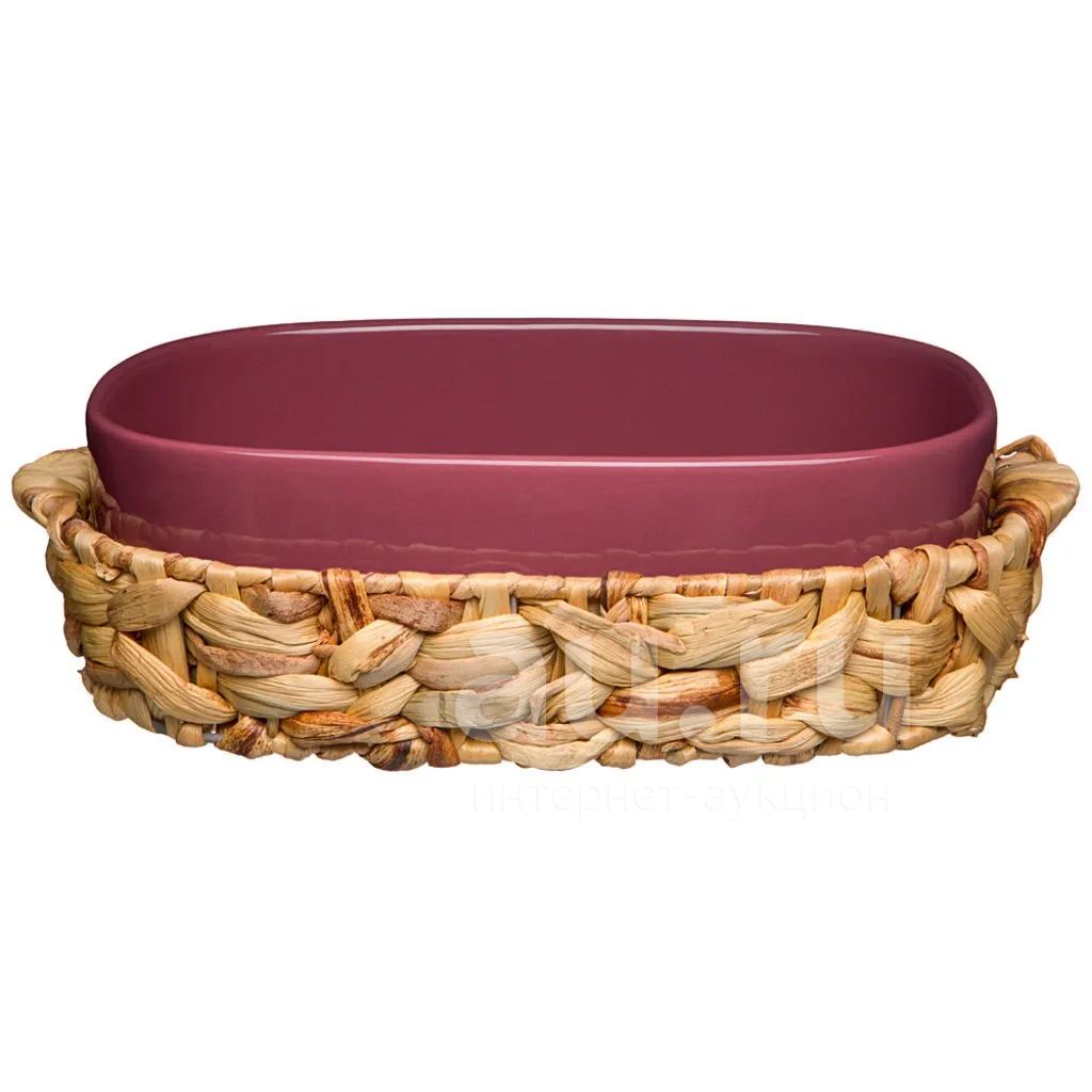 Блюдо фарфор, 20х29.5х8 см, 1.2 л, овальное, для запекания в плетеной корзине, брусничное, Bronco, Fusion, 263-1158
