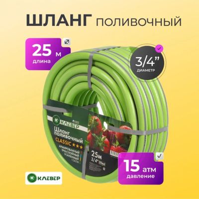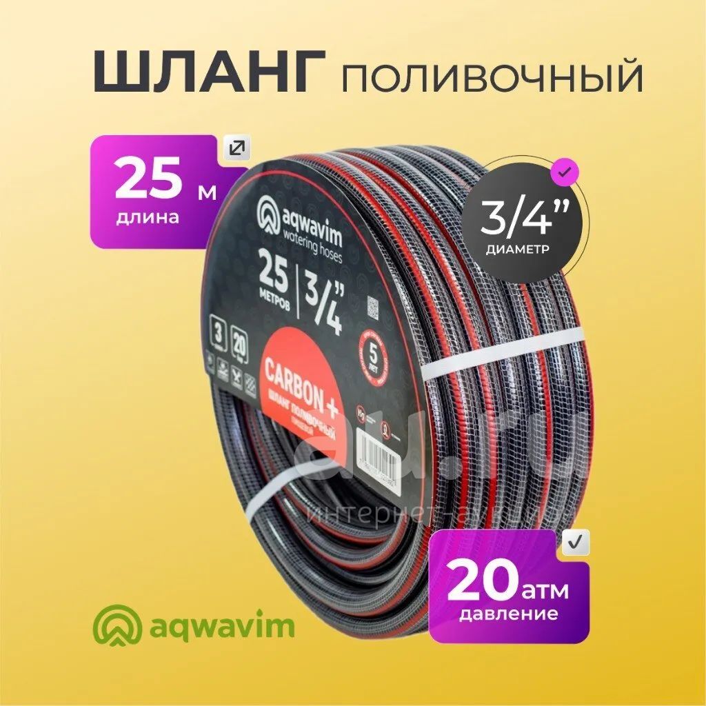 Шланг поливочный, 3/4 '', 20 атм, армированный, 25 м, 3 слоя, Aqwavim, Carbon, ПВХ