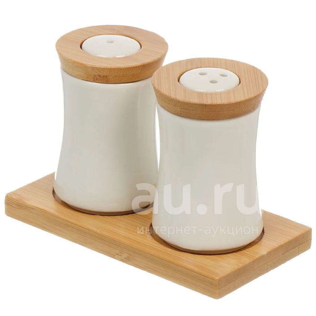 Набор для специй фарфор, бамбук, 8 см, 2 шт, 12.5х6.5х8 см, на подставке, Naturel, Nouvelle Home, 2633018
