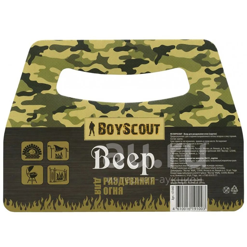 Веер предназначен для создания направленного потока воздуха в зону горения. Применяется в походных условиях, когда под рукой может не оказаться подходящего предмета.