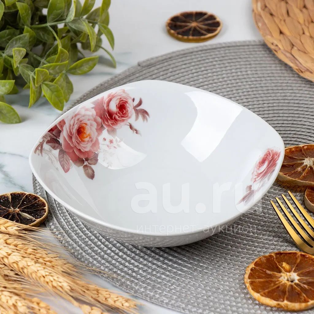 Салатник керамика, квадратный, 18 см, 0.56 л, Розы, Daniks, 17-023