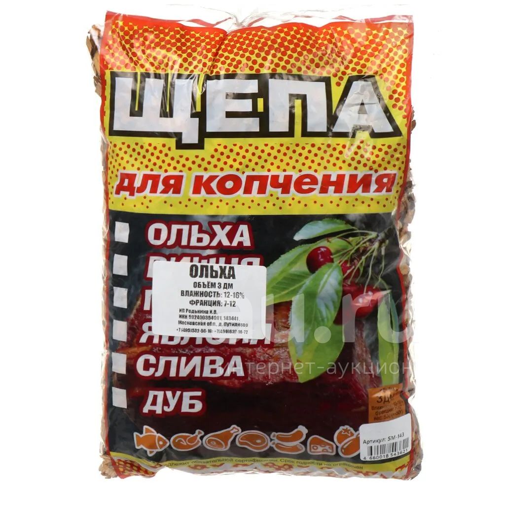 Наравне с яблочной, одной из самых ароматных и полезных считается ольховая щепа для копчения. Москва предлагает обладателям собственных коптилен целый ряд торговых точек по продаже уже готовой и расфасованной древесной щепы. Ее заготавливают особым образом специально для получения особого дыма впоследствии. Видом выбранной древесины обуславливается цвет готового продукта, его запах и вкус. Ольховая щепа для копчения придаёт блюдам слегка кисловатый вкус, терпкий аромат, тёмно-жёлтый или коричневый цвет. Щепа ольховая для копчения подходит для копчения сыров, мяса, кролика, морепродуктов. Щука, окунь и любая другая рыба приобретёт потрясающий вкус, если коптить их на ольховой щепе.