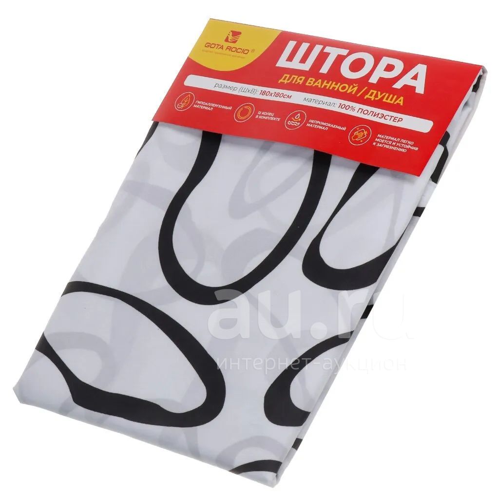 Штора для ванн 180х180 см, полиэстер, Gota Rocio, Black and White, 16201