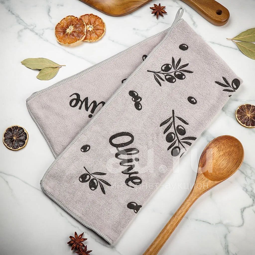 Полотенце кухонное махровое, 35х75 см, 300 г/м2, 80% полиэстер, 20% полиамид, Оливки, серое, Китай, м0948_11