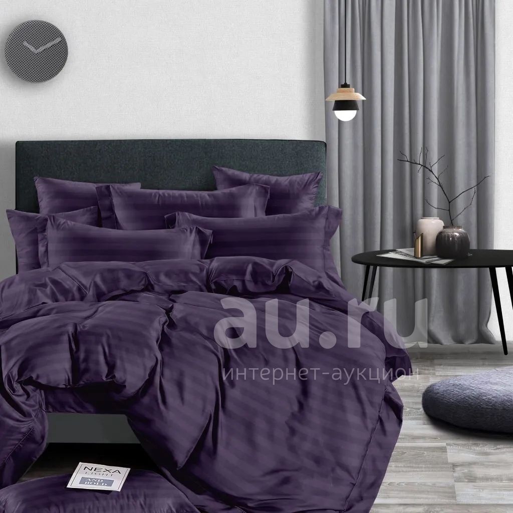 Постельное белье 2-спальное, с европростыней, простыня 220х240 см, 2 наволочки 70х70 см, пододеяльник 175х215 см, Stripe, страйп-полисатин, 19-3215 фиолетовый