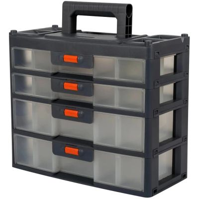 Органайзер для мелочей помогает содержать в порядке, переносить на место выполнения работ и быстро находить метизы и аксессуары. Идеален для использования дома, на даче, в гараже, мастерской, в автомобиле. Внутреннее деление на отсеки делает удобным размещение внутри органайзера деталей, которые необходимо отделить друг от друга. 12 съёмных перегородок позволяют изменять размер отсеков под личные нужды. Прозрачная крышка позволяет увидеть содержимое, не открывая органайзер. Имеется петля для подвеса. Подходит для хранения рыболовных и швейных принадлежностей, коллекционирования, занятия хобби.